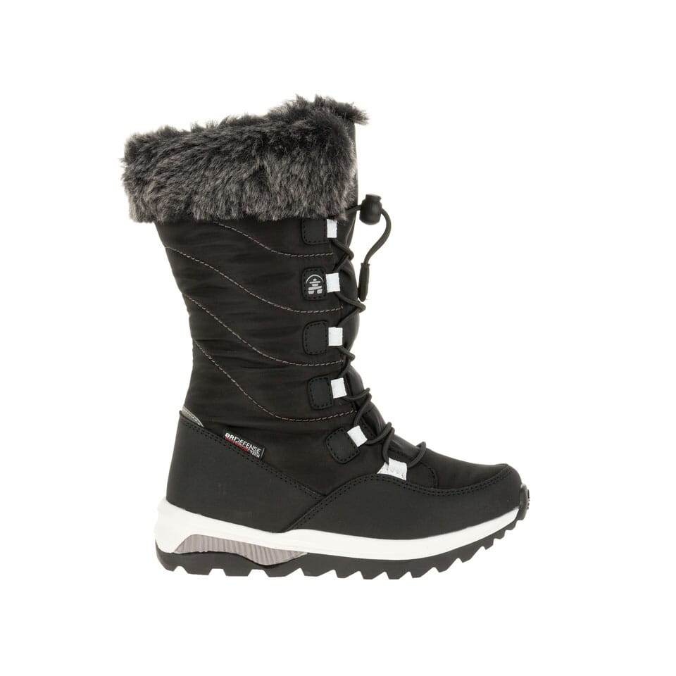 • Tige en nylon à membrane DriDefense imperméable avec col pare-neige en fausse fourrure et languette à gousset