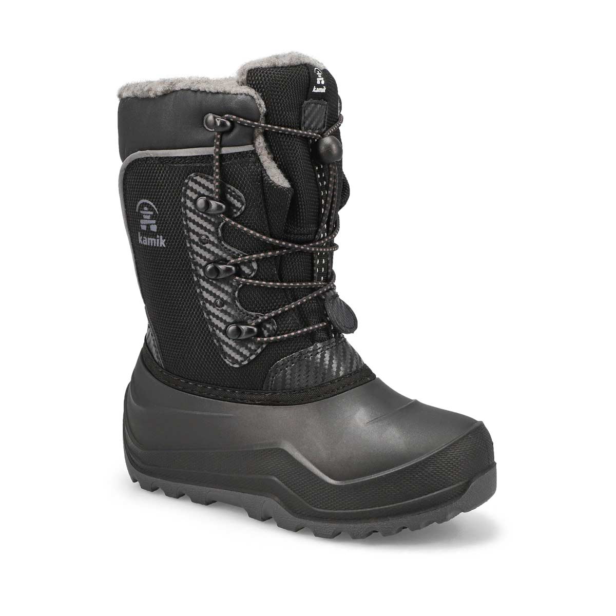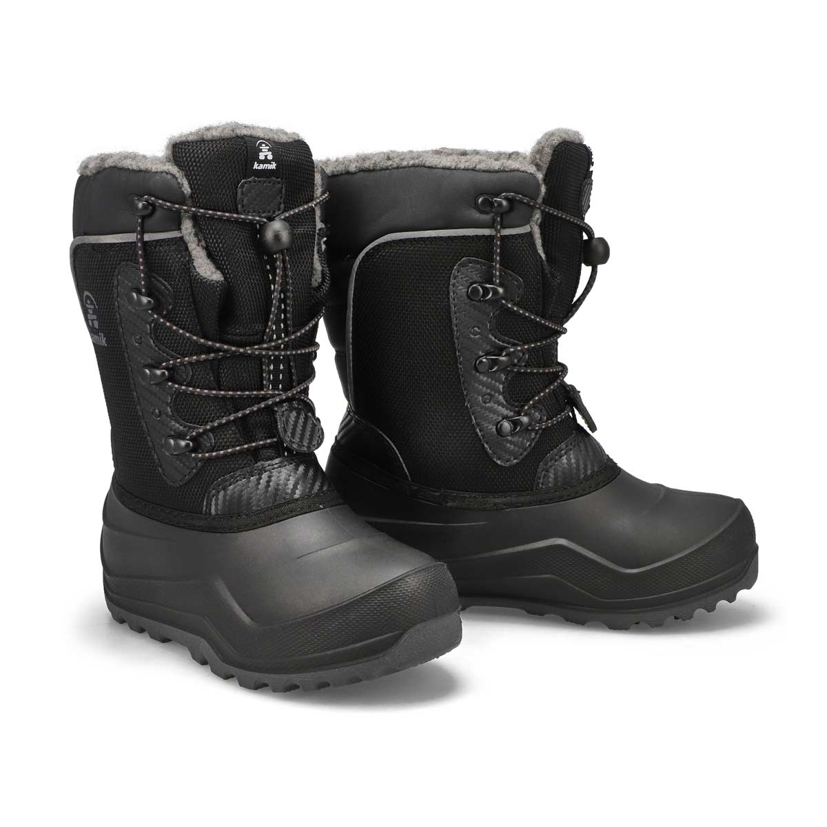 Complete with a RubberHe waterproof bottom to keep feet dry, the Luke 4 waterprooof’ black snow boots from Kamik are designed for everything from building snow forts to sledding. Plus, these winter boots for kids are equipped with reflective NiteRays patches for added safety after dark. Waterproof 1200 denier nylon and synthetic carbon fiber upper. Snowave outsole with multi-directional lugs for superior traction in the snow. Made in Canada