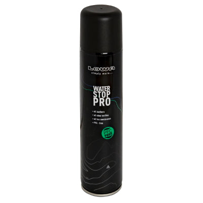 The LOWA WATER STOP PRO (300ml) is the ideal aerosol product for all leathers and shoe textiles and is suitable for Gore-Tex® products. This patented shoe care product helps to waterproof and condition fine leathers. The aerosol closes the pores of the leather, preventing water absorption, while maintaining the aeration properties of fine leather.